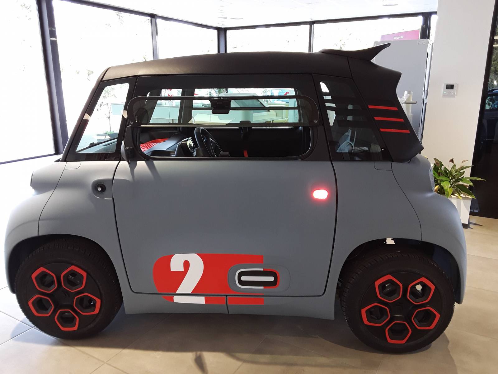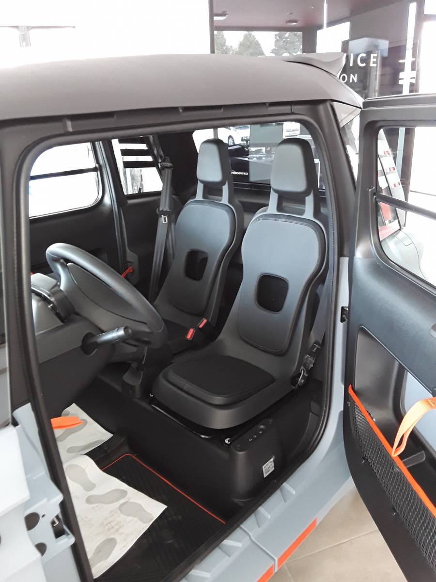 Pour les nostalgiques,... les vitres latérales s'ouvrent en basculant manuellement vers le haut à l'image de la 2CV.