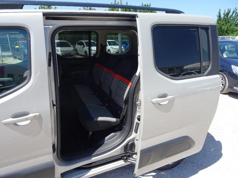 Accès et démarrage mains libres, Pack Drive Assist, Pack Park Assist, Pack Recharge, Roue de secours tôle 16", Sable (N), 2 Portes latérales coulissantes, 3 sièges individuels en rang 2, ABS, Accoudoir central AV, Affichage tête haute couleur, AFIL, Aide au démarrage en côte, Aide au freinage d'urgence, Aide au stationnement arrière, Airbag conducteur, Airbag passager, Airbags latéraux avant, Airbags rideaux, Airbump Black, Allumage des phares automatique, Antipatinage, Capteur de pluie, Citroën Connect Nav, Citroën Connect Nav + Connect Box, Citroën Connect Radio écran tactile 8", Climatisation automatique bizone, Commandes du système audio au volant, Condamnation sécurité enfants électrique, Connect Box Pack SOS et assist. inclus, Détecteur de sous-gonflage, ESP, Feux de jour à LED, Fixations Isofix aux places arrières, Follow me home, Freinage automatique d'urgence, Frein stationnement électrique, Kit mains-libres Bluetooth, Limiteur de vitesse, Lunette ouvrante + vitres AR surteintées, Mirror Screen, Modutop, Ordinateur de bord, Ouverture des vitres séquentielle, Phares antibrd+éclairage stat. Intersec., Poches d'aumonières, Poignées ton carrosserie, Pommeau de levier vitesse en cuir, Porte-gobelets arrière, Porte-gobelets avant, Prise 12V, Prise Jack, Prise USB, Reconnaissance panneaux de signalisation, Régulateur de vitesse, Répartiteur électronique de freinage, Rétroviseur intérieur électrochrome, Rétroviseurs dégivrants, Rétroviseurs électriques, Rétroviseurs rabattables électriquement, Siège conducteur avec réglage lombaire, Siège conducteur réglable en hauteur, Siège passager rabattable, Système audio MP3 6 HP, Système de prévention des collisions, Tablette arrière, Tablette cache bagages, Témoin de bouclage des ceintures AV, Tissu Mica Green, Verrouillage centralisé à distance, Verrouillage centralisé des portes, Vitres avant électriques, Volant en croûte de cuir, Volant réglable en profondeur et hauteur.