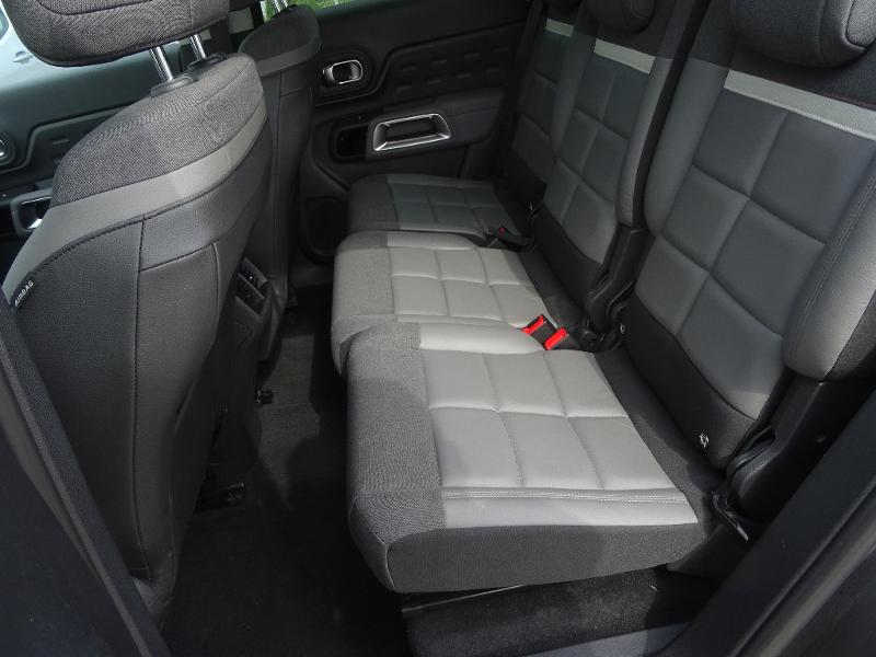 Pack Drive Assist (BVM), Pack Park Assist + Projecteurs Full LED, Roue de secours galette, Gris Platinium, 3 sièges individuels en rang 2, 6 Haut parleurs, ABS, AFIL, Aide au démarrage en côte, Aide au freinage d'urgence, Airbag conducteur, Airbag passager, Airbag passager déconnectable, Allumage des phares automatique, Appel d'Assistance Localisé, Appel d'Urgence Localisé, Capteur de pluie, Ceinture de vitrage chromée, Citroën Connect Nav, Clim automatique bi-zones, Démarrage sans clé, Détecteur de sous-gonflage, Eclairage statique d'intersection, ESP, Feux arrière à LED, Feux de freinage d'urgence, Feux de jour à LED, Fixation Isofix siège passager avant, Fixations Isofix aux places arrières, Follow me home, Fonction MP3, Freinage automatique d'urgence, Frein stationnement électrique automatiq, Jantes alliage 18" SWIRL Diamantées, Jantes Alu, Kit mains-libres Bluetooth, Lampes de lecture à l'avant, Limiteur de vitesse, Lunette arrière surteintée, Mirror Screen, Ouverture des vitres séquentielle, Pack City Camera Plus, Phares antibrouillard, Prise 12V, Prise USB, Radar de stationnement AR, Radar de stationnement AV, Radio, Recharge sans fil pour smartphone, Reconnaissance panneaux de signalisation, Régulateur de vitesse, Répartiteur électronique de freinage, Rétroviseur intérieur électrochrome, Rétroviseurs dégivrants, Rétroviseurs électriques, Rétroviseurs rabattables électriquement, Services connectés, Siège conducteur avec réglage lombaire, Siège conducteur réglable en hauteur, Siège passager réglable en hauteur, Sièges arrière coulissants, Sièges rang 2 inclinables, Sièges rang 2 rabattables à plat, Système d'accès sans clé, Système de contrôle des angles morts, Système de prévention des collisions, Témoin de bouclage des ceintures AV, Tissu Stone Grey / Tissu effet cuir Noir, Verrouillage centralisé à distance, Verrouillage centralisé des portes, Vitres arrière électriques, Vitres arrière surteintées, Vitres avant électriques, Volant cuir, Volant multifonction, Volant réglable en profondeur et hauteur.